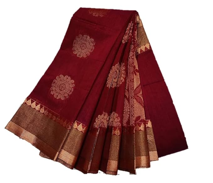 GEERANG MART Women Kota Silk Cotton Saree With Double Sided Tissue Border Saree With Butta Embedded Saree, Enriched Golden Jari Rich Pallu,Blouse Running Along With The Saree